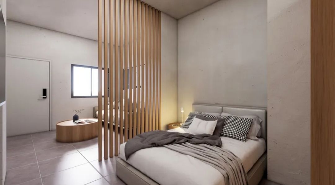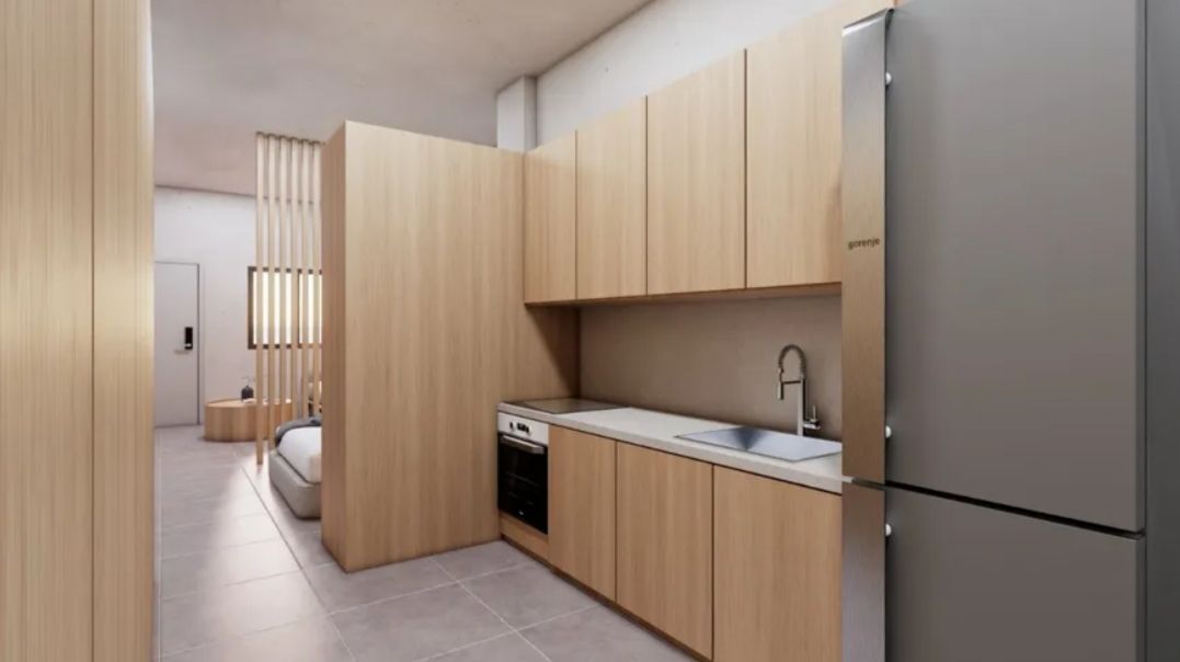 Είναι διαρρυθμισμένο σε 2 επίπεδα με εσωτερική σκάλα. Αποτελείται από 2 υπνοδωμάτια με ντουλάπες, σαλοκουζίνα εξοπλισμένη με ηλεκτρικές συσκευές και 1 μπάνιο.