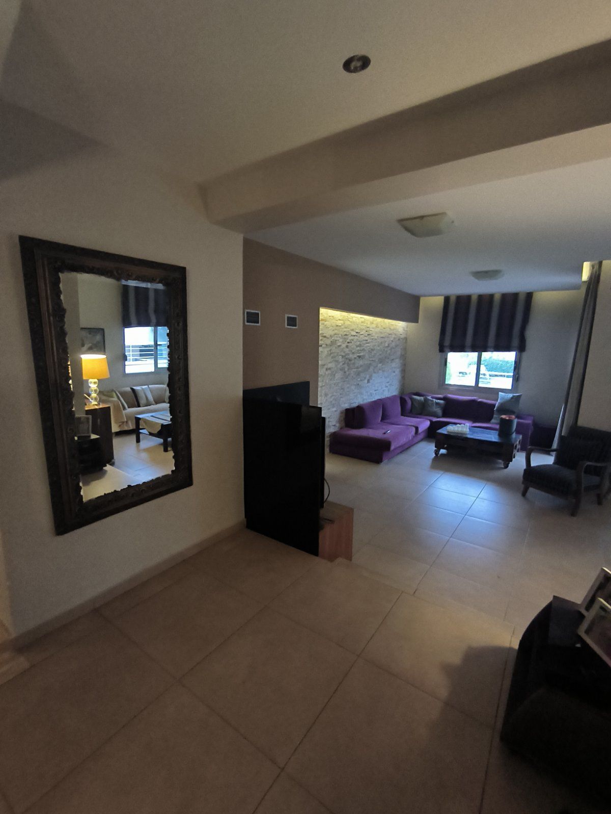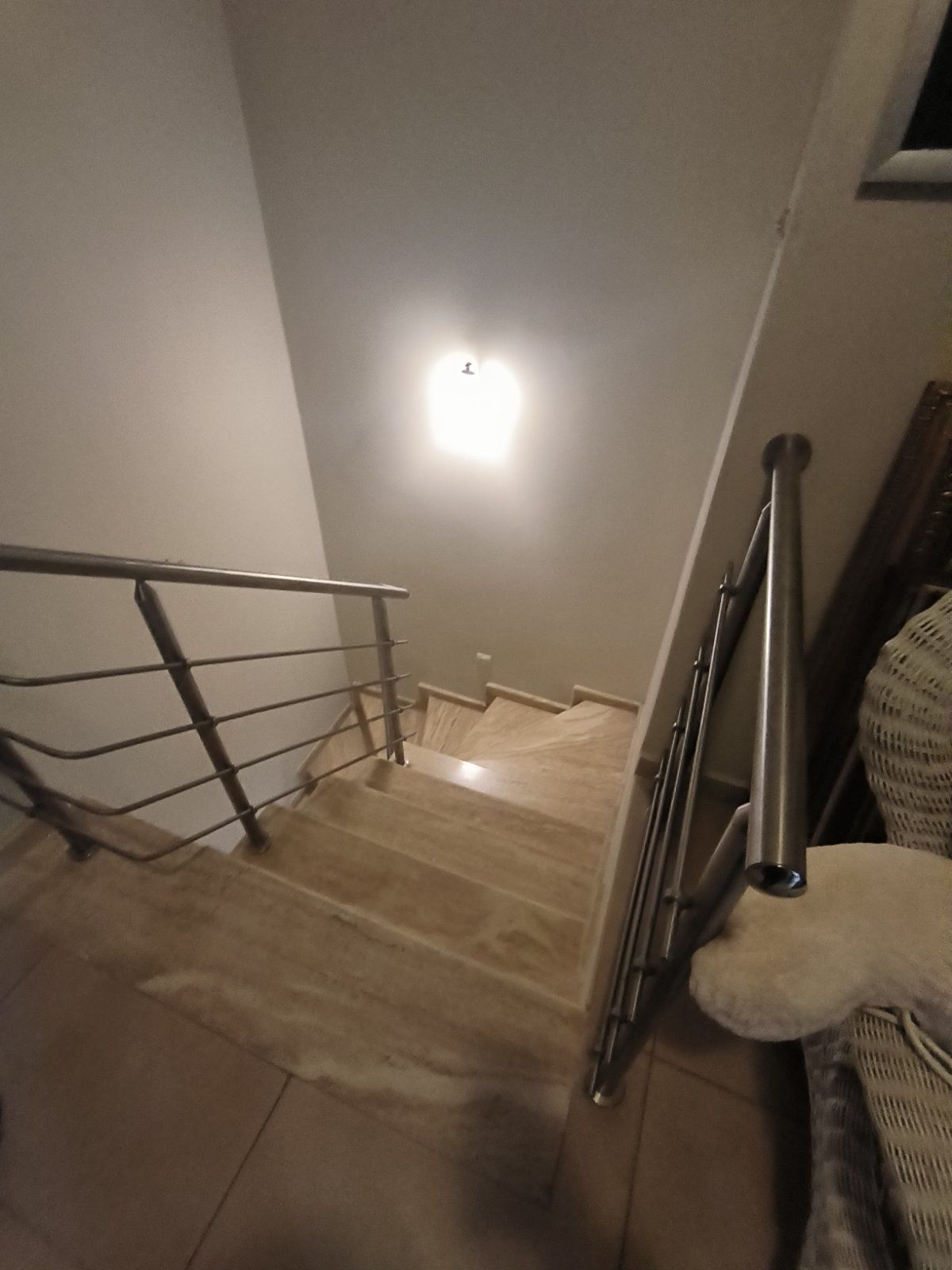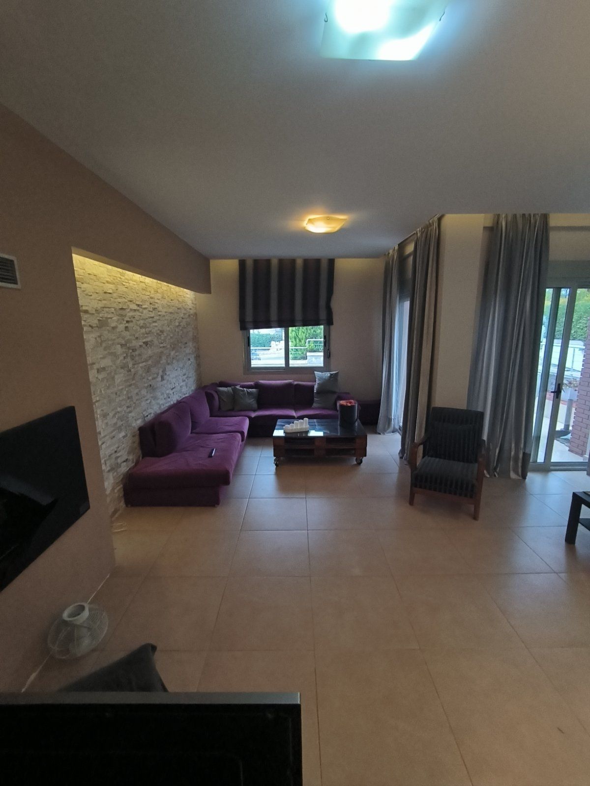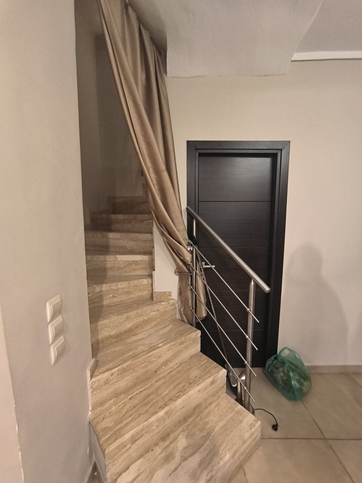 Είναι διαρρυθμισμένο σε 3 επίπεδα με εσωτερική σκάλα κατασκευής πορόλυθου. Αποτελείται από 4 υπνοδωμάτια με ντουλάπες, 2 σαλονοκουζίνες με κόριαν πάγκο και 4 μπάνια, το ένα με τζακούζι. Επιπλέον διαθέτει 80τμ κήπο, βεράντα, δύο αποθήκες και θέση στάθμευσης.