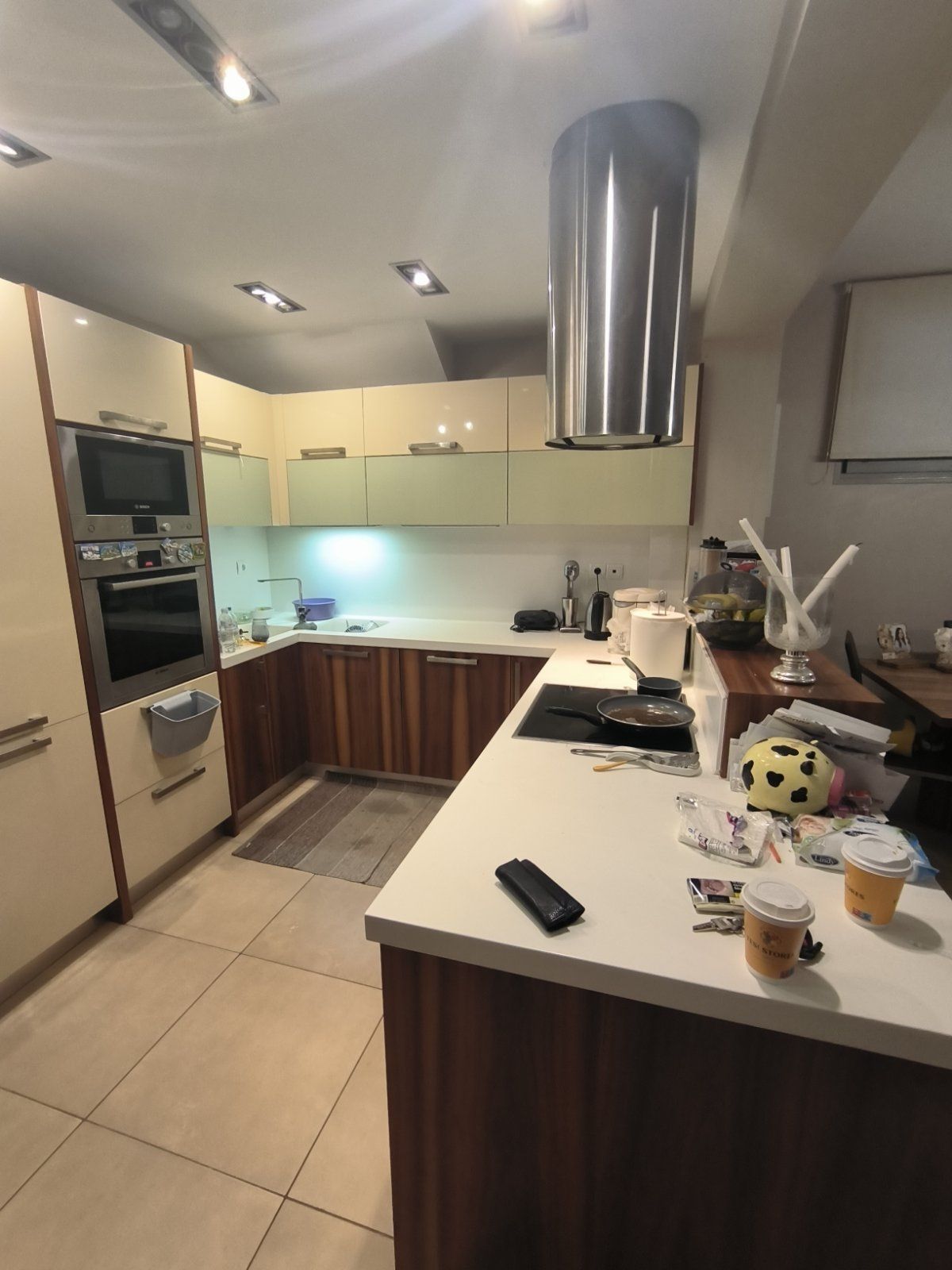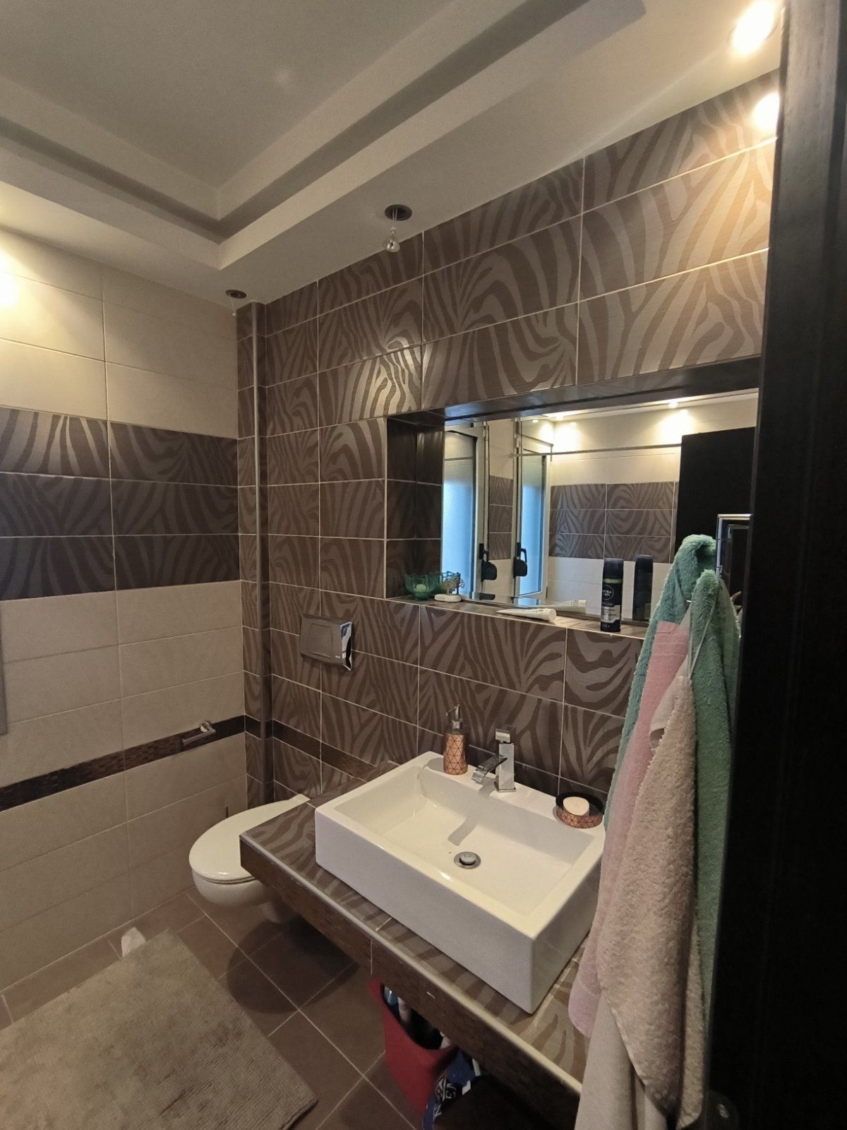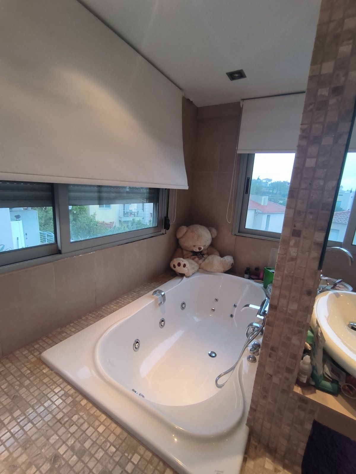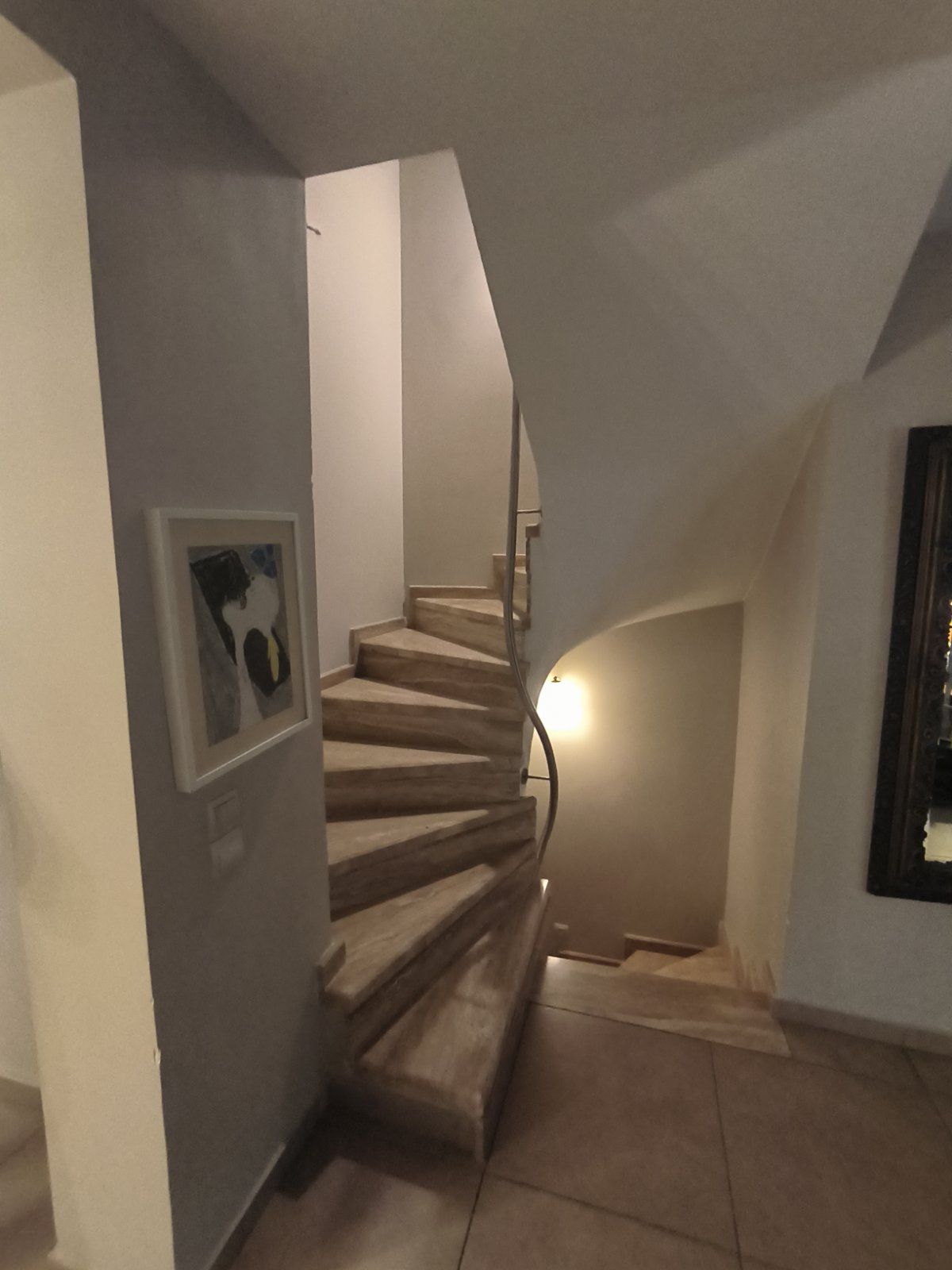 Είναι διαρρυθμισμένο σε 3 επίπεδα με εσωτερική σκάλα κατασκευής πορόλυθου. Αποτελείται από 4 υπνοδωμάτια με ντουλάπες, 2 σαλονοκουζίνες με κόριαν πάγκο και 4 μπάνια, το ένα με τζακούζι. Επιπλέον διαθέτει 80τμ κήπο, βεράντα, δύο αποθήκες και θέση στάθμευσης.