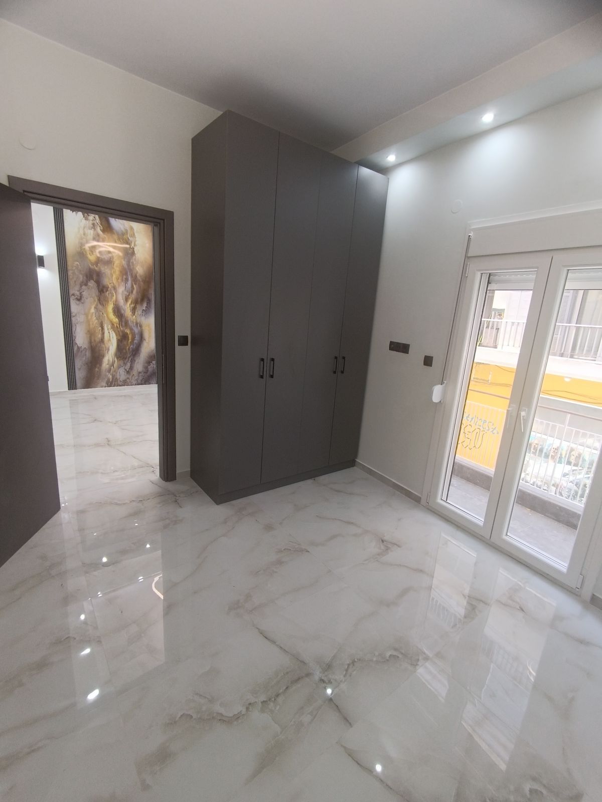 Διαθέτει κουφώματα συνθετικά με διπλά τζάμια και είναι εξοπλισμένα με σίτες. Τα δάπεδα είναι από πλακάκια.