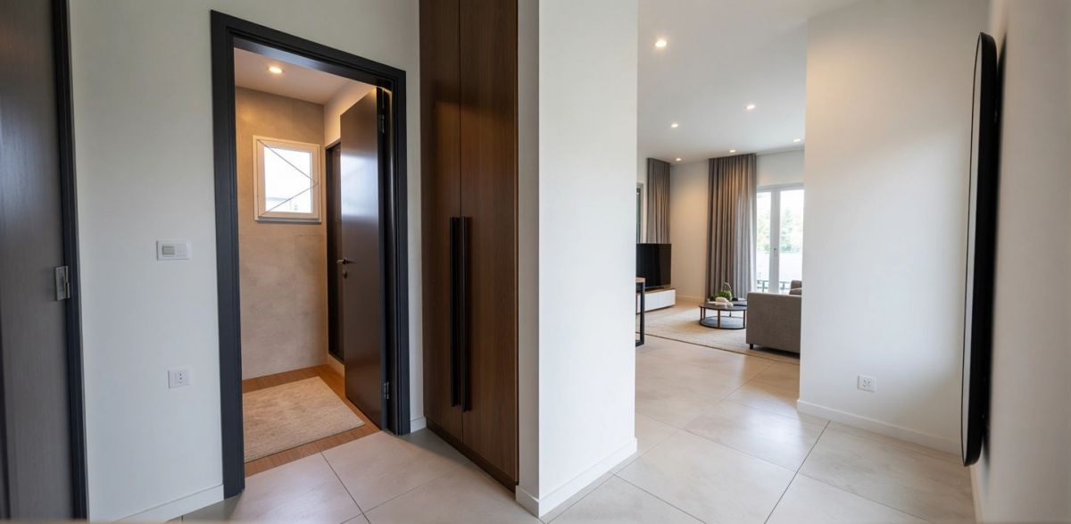 Διαθέτει κουφώματα συνθετικά με διπλά τζάμια και είναι εξοπλισμένα με σίτες. Τα δάπεδα είναι από πλακάκια. Στα θετικά στοιχεία του αξίζει να επισημανθεί η πλήρης επίπλωση.