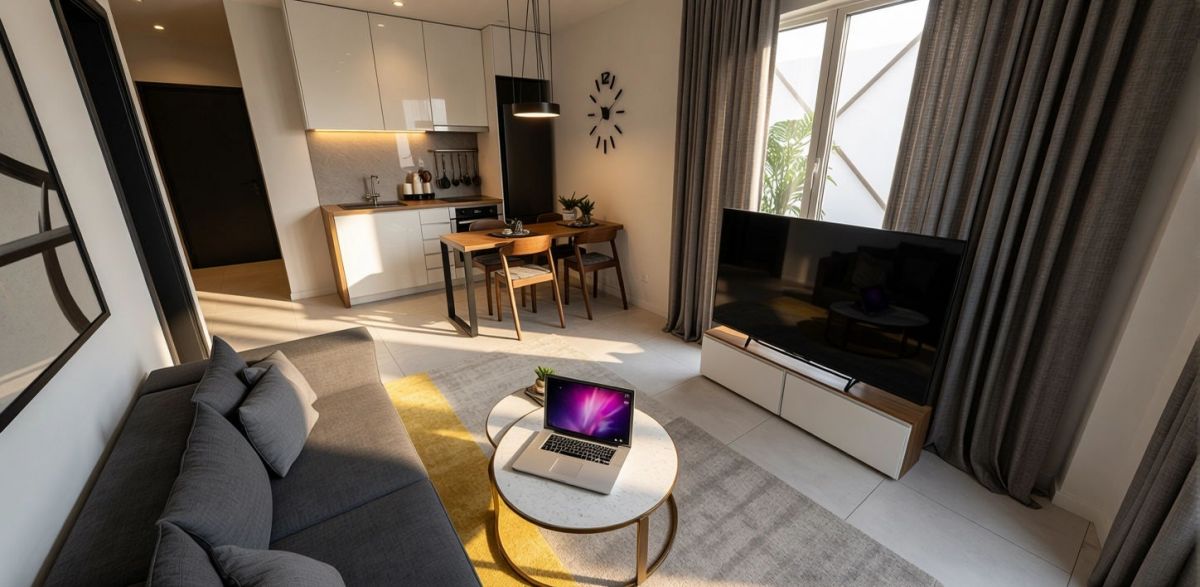 Αποτελείται από 2 υπνοδωμάτια με ντουλάπες, σαλοκουζίνα εξοπλισμένη με ηλεκτρικές συσκευές και 1 μπάνιο. Επιπλέον διαθέτει βεράντα.